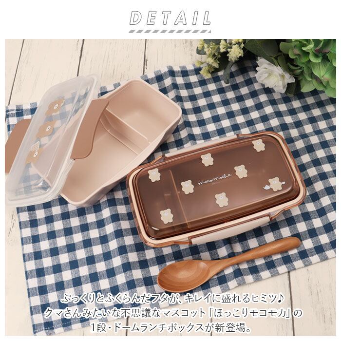 ・ぷっくりとふくらんだフタが、キレイに盛れるヒミツ♪クマさんみたいな不思議なマスコット「ほっこりモコモカ」の1段・ドームランチボックスが新登場。