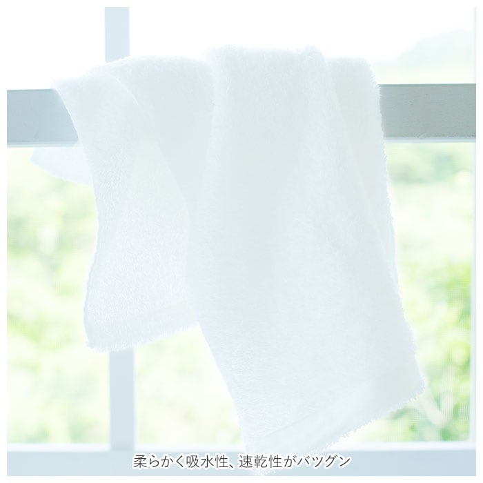 ・糸の内部に隙間を作った中空糸(スピンエアー)を使用。柔らかく吸水性、速乾性がバツグン。