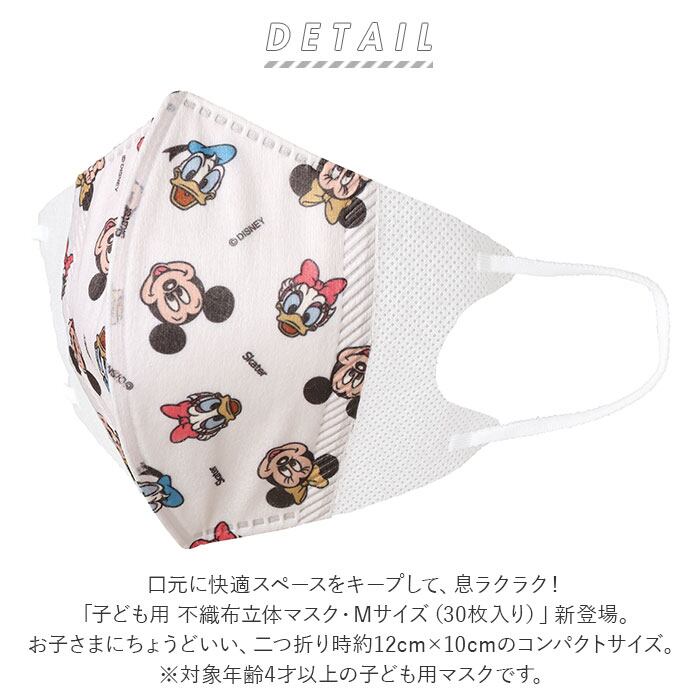 ・口元に快適スペースをキープして、息ラクラク!「子ども用 不織布立体マスク・Mサイズ(30枚入り)」新登場。