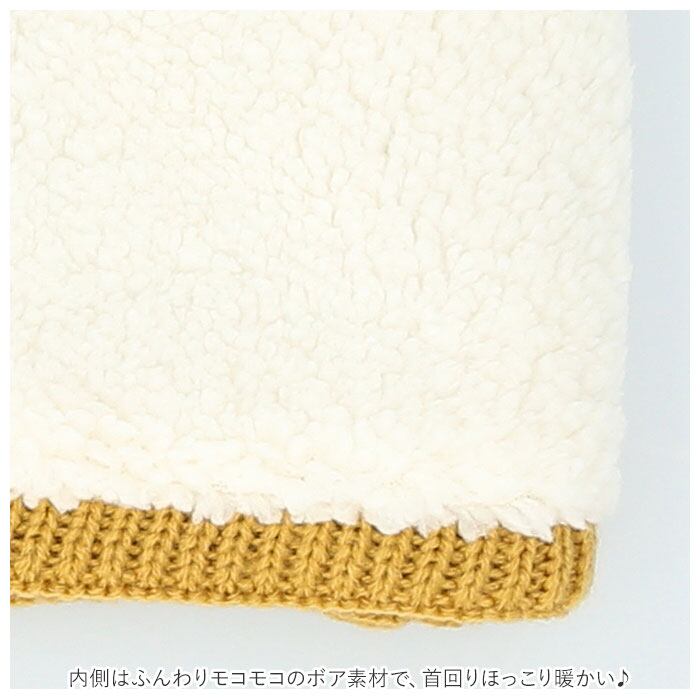 ・外側はざっくりと編まれたニット素材、内側はふんわりモコモコのボア素材で、首回りほっこり暖かい♪