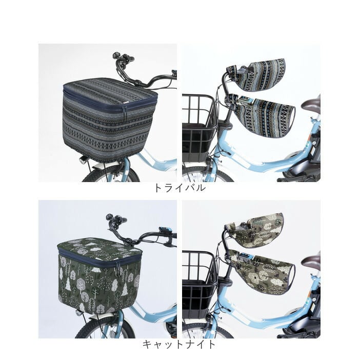 ・前カゴカバーとハンドルカバーをお揃いにすれば、お洒落さUP!自分の自転車がパッと見つかる個性的な柄を豊富にラインナップ!