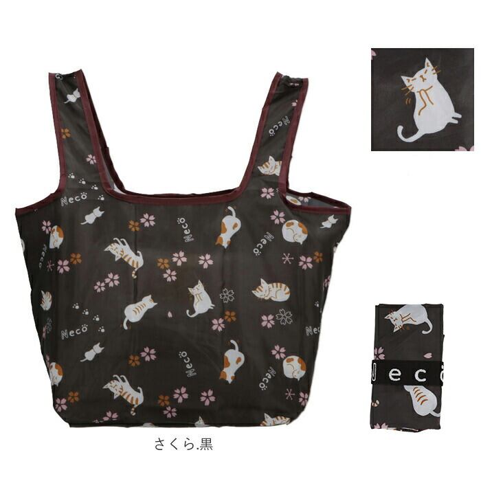 【廃盤】エコバッグ 折りたたみ コンパクト コンビニ 通販 マチ広 お弁当 おしゃれ 持ち帰り マイバッグ ショッピングバッグ レディース ネコ 猫雑貨 折り畳み 弁当 テイクアウト コンビニ袋 レジ