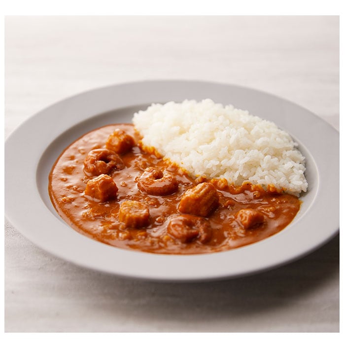 ・ガーリックシュリンプカレー…ハワイのB級グルメとして愛されている「ガーリックシュリンプ」がお手本。炒めた玉ねぎの甘みを生かし、食欲をそそるガーリックを効かせ、エビの旨みが溶け込んだ中辛カレー。