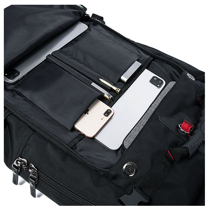 ・最大約50L分収納できる大容量。メインルームにはタブレットやノートパソコンを安全に入れられるクッション性のあるオープンポケット×1に、小物類が見やすいメッシュポケット×1を装備。小物が整理しやすく、収納力抜群。