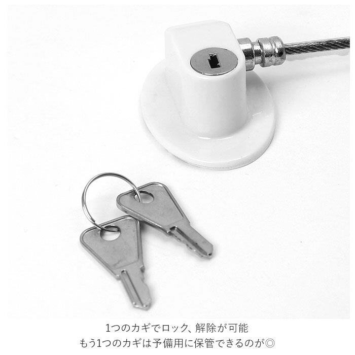 1つのカギでロック、解除が可能。もう1つのカギは予備用に保管できるのが◎