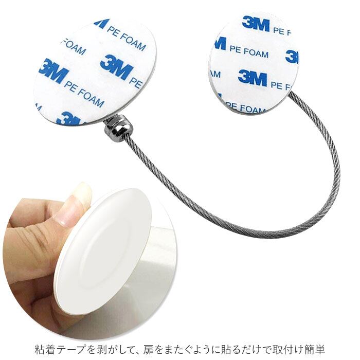 ・粘着テープを剥がして、扉をまたぐように貼るだけで取付け簡単。