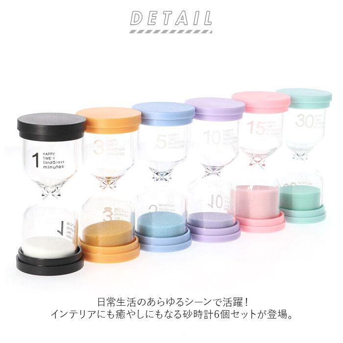 ・1分、3分、5分、10分、15分、30分の時間を計測できる6個セット。