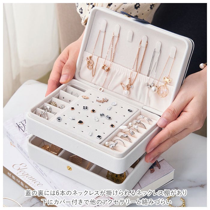 アクセサリー 収納 通販 ジュエリーケース 2段式 小物入れ ボックス 宝石箱 軽量 収納ケース 持ち運び 携帯 大容量 かわいい BOX リング ネックレス おしゃれ 旅行