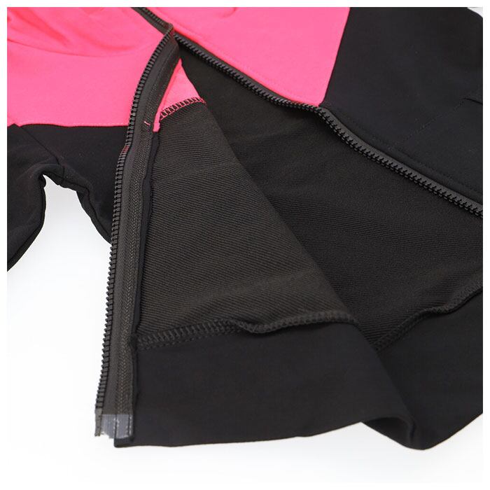 ・トップスは前合わせフルジップタイプで、着脱スムーズ。襟を立てて着ればよりシャープな印象に。