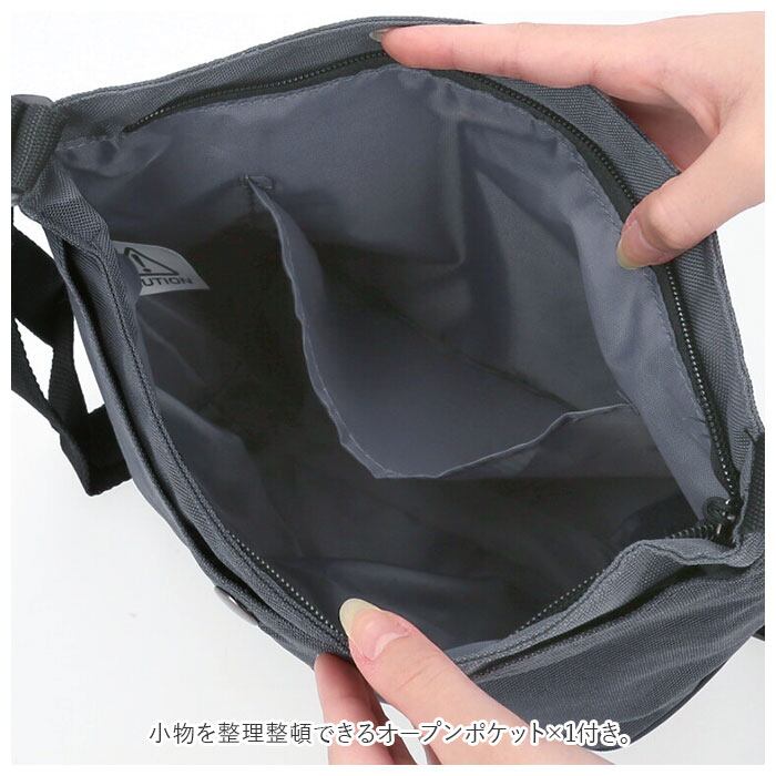 ・メインルーム開口部はファスナー式。中身がこぼれ落ちることなく、プライバシーを確保。