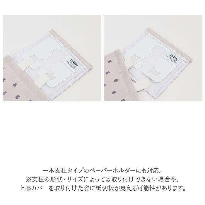 ・一本支柱タイプのペーパーホルダーにも対応。(※支柱の形状・サイズによっては取り付けできない場合や、上部カバーを取り付けた際に紙切板が見える可能性があります。)