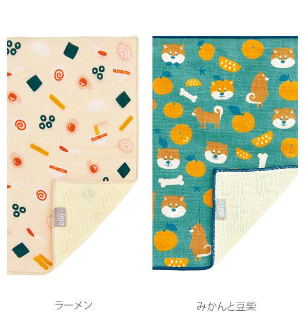 動物達や食べ物、星…お話の一場面を切り取ったような、おもしろ可愛い柄がいっぱいのハンカチ♪裏面パイルはオーガニックコットンを使用したパイル地。選んで楽しいハンカチは、贈り物にも最適です。