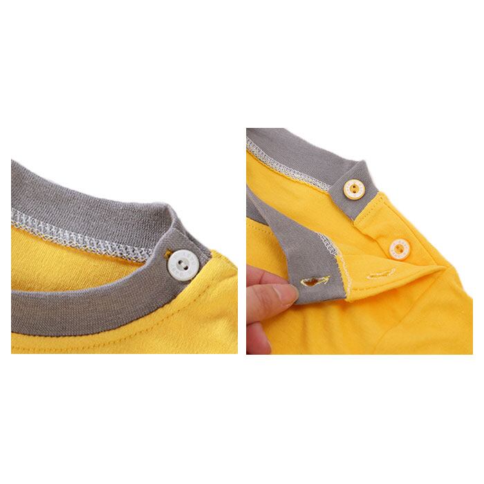 80サイズ〜100サイズのトップスは襟元にボタンが付いており、着脱が楽ちん。(※110サイズ、120サイズにはボタンが付いておりません。)