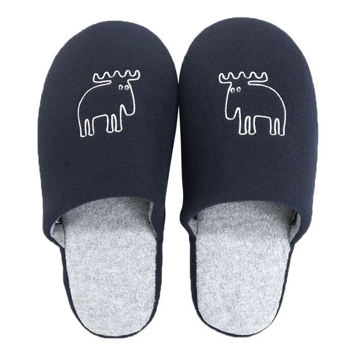 ・ご家庭になじみの良いカラーに、mozのトレードマーク「エルク」(ヘラジカ)の刺繍が際立つスリッパ。