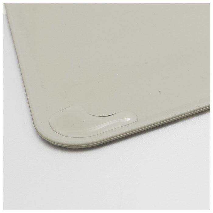 ・マットの縁がわずかに高くなり、中央部分はフラットに加工されているので、こぼしたお水が広がらず床面を汚さない!