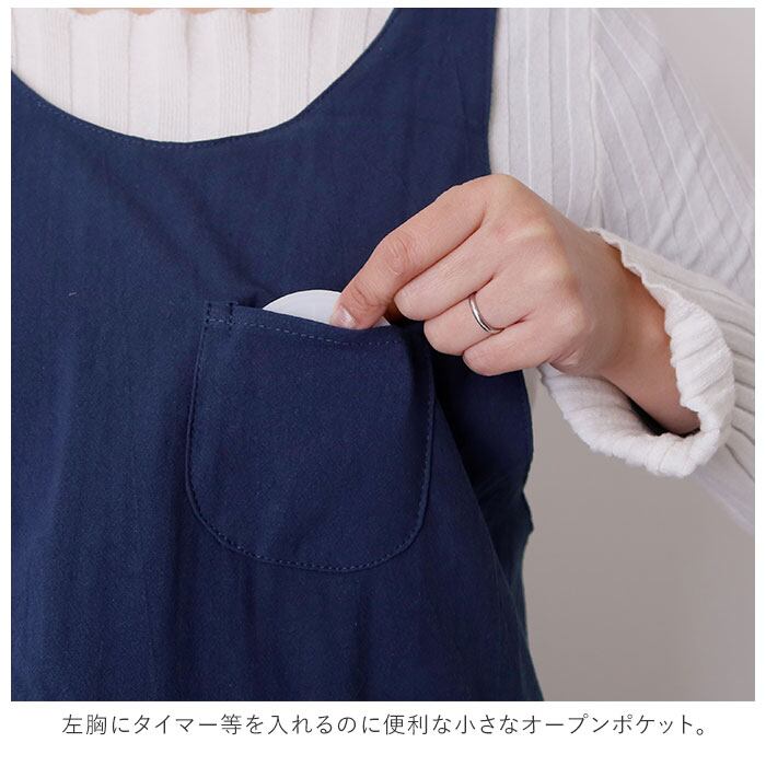コットンリネン ポケット付き キッチンエプロン