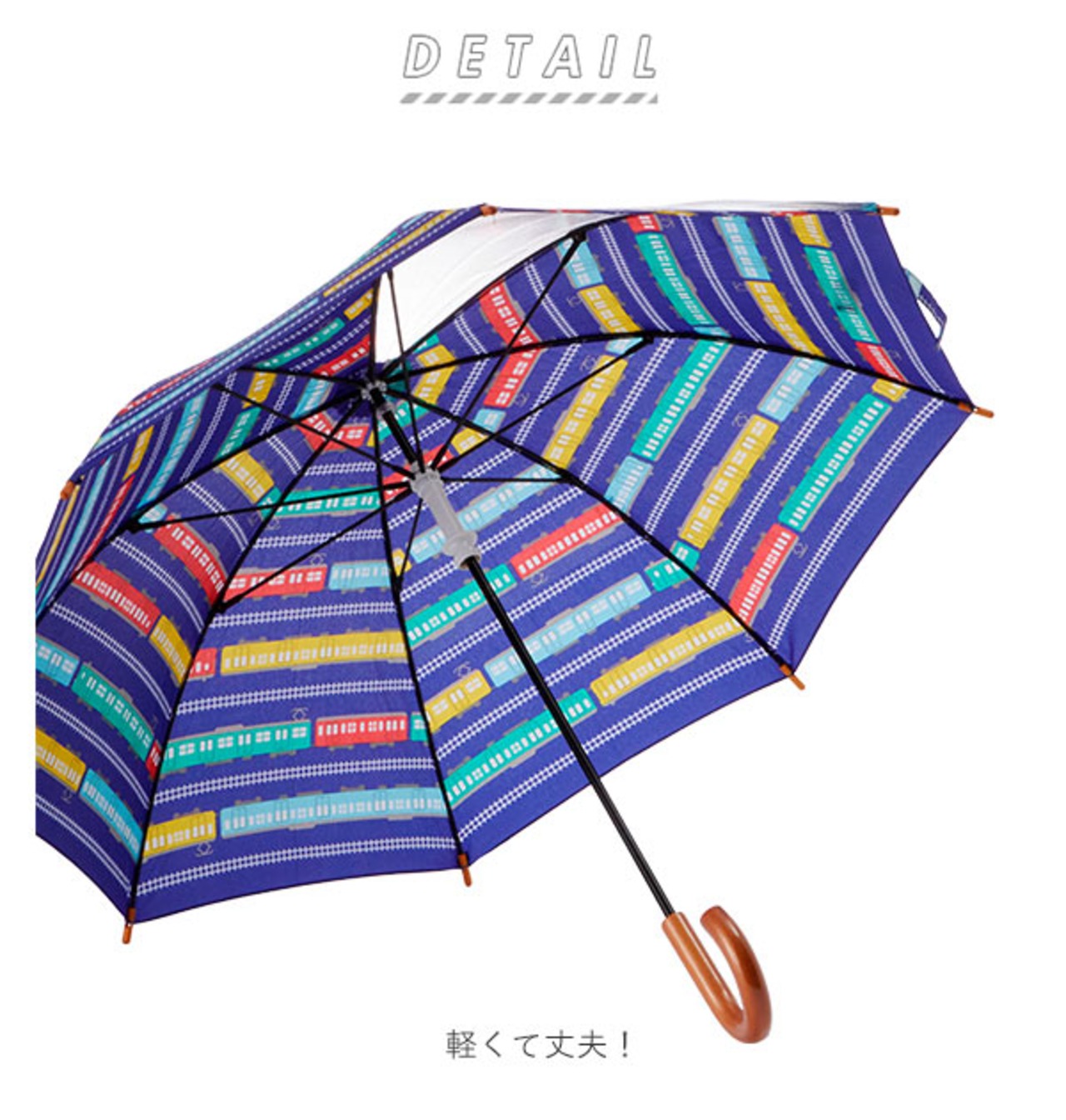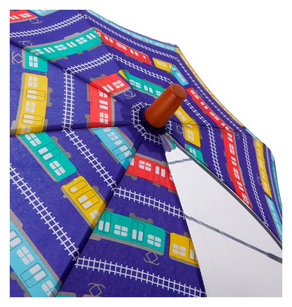 雨の日も楽しく♪電車や雨がモチーフのかわいい柄のキッズ長傘です。安全手開き式、一カ所透明窓付きで、前が見えるので、小さなお子様でも安心です。