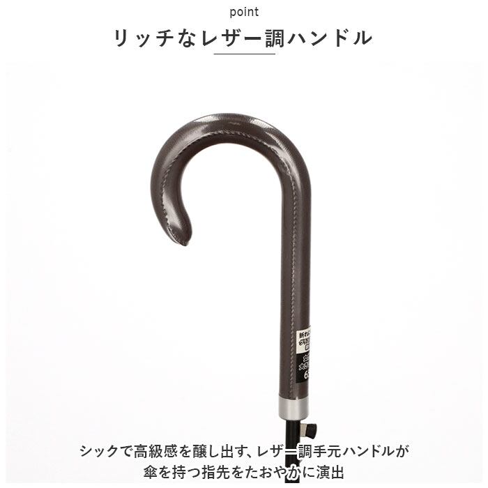 ・シックで高級感を醸し出す、レザー調手元ハンドルが傘を持つ指先をたおやかに演出。