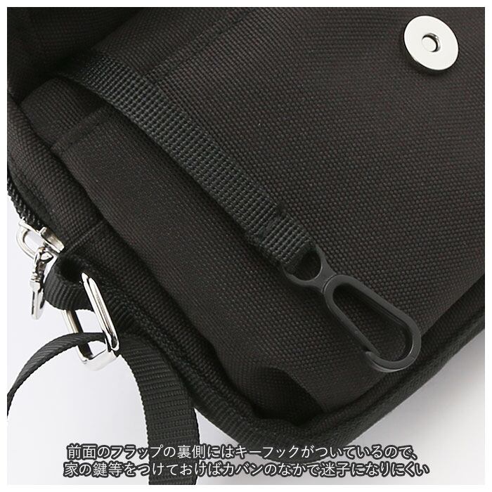 ・前面のフラップの裏側には、キーフックがついているので、家の鍵等をつけておけばカバンのなかで迷子になりにくい。