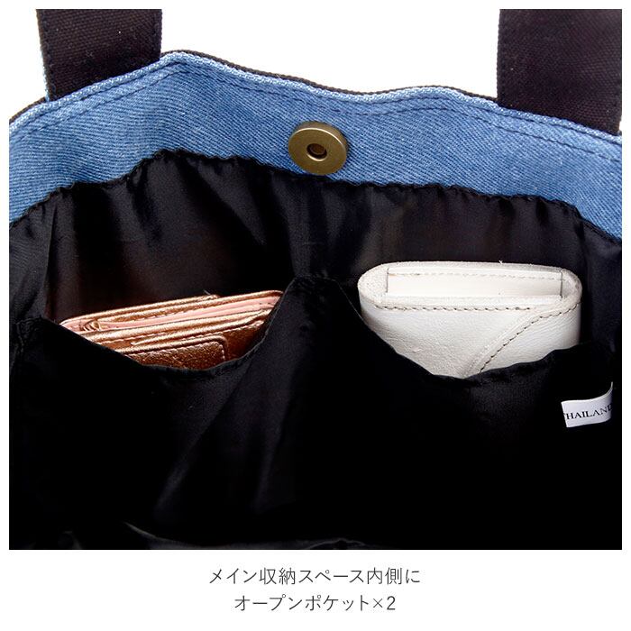・メイン収納スペース内側に仕切りタイプのオープンポケットが2つ付いて、小物がすっきり片付く!
