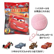 ・発砲タイプのまあるいバスボールが溶けると、カプセルに入った可愛いマスコットが出てくるよ!どのキャラクターが出てくるかはお風呂に入ってからのお楽しみ。
