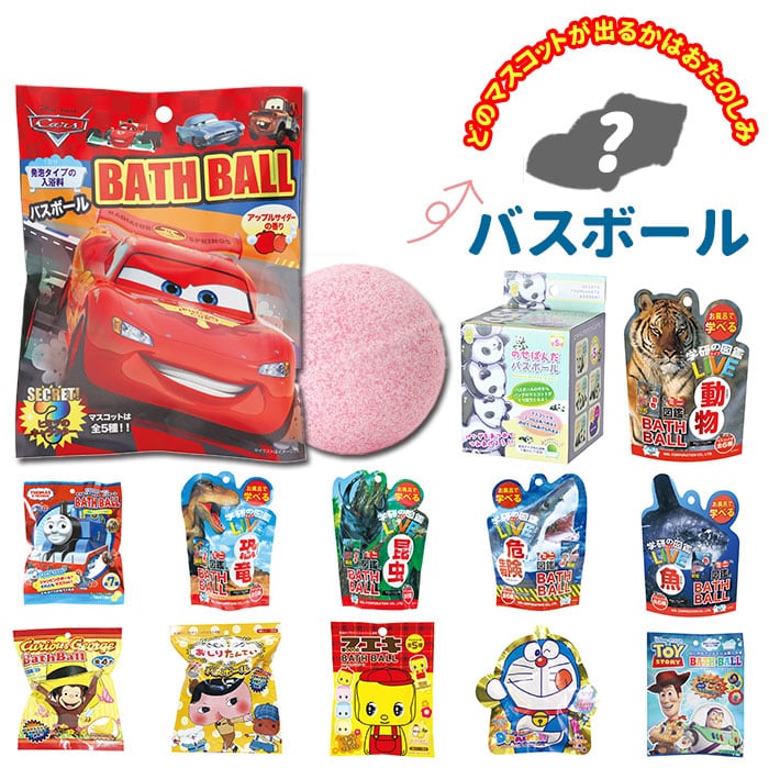 ・ドラえもんやトイストーリー、きかんしゃトーマスなど、お気に入りのキャラクターのバスボールを選んでね!