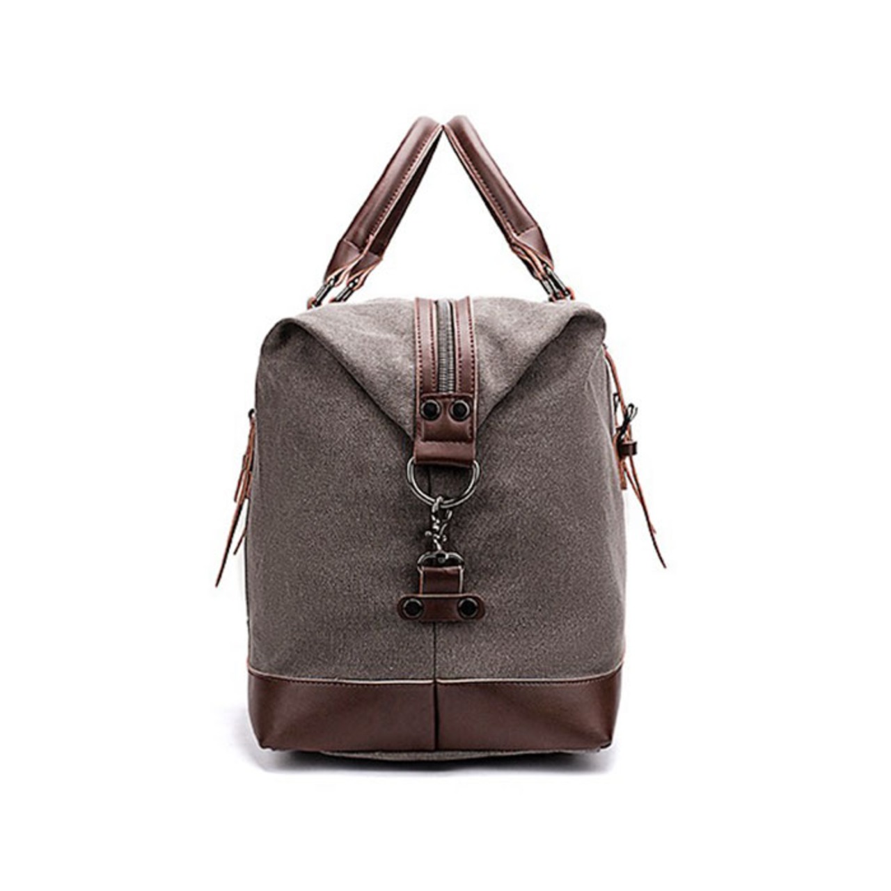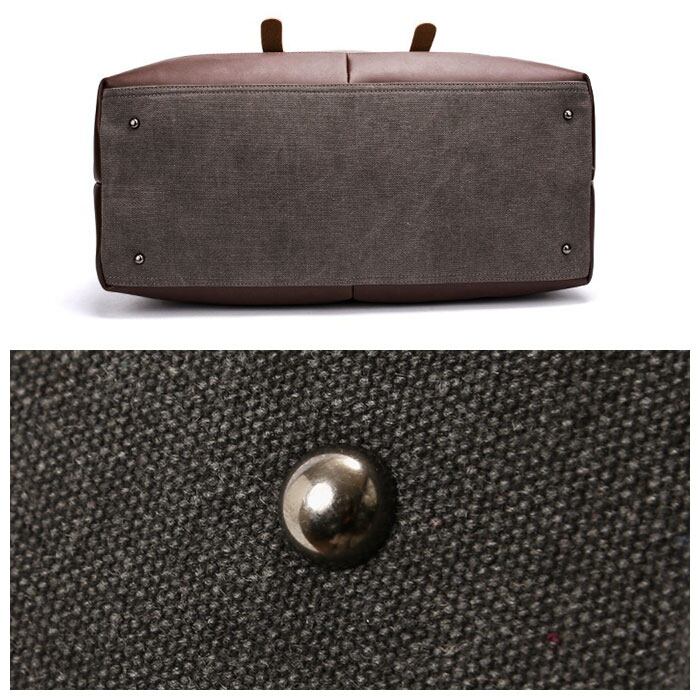 ・長年使い込んだような味わいのあるキャンバス生地に、ブラウンのフェイクレザーパーツを合わせたビンテージ感溢れるデザインが特徴。