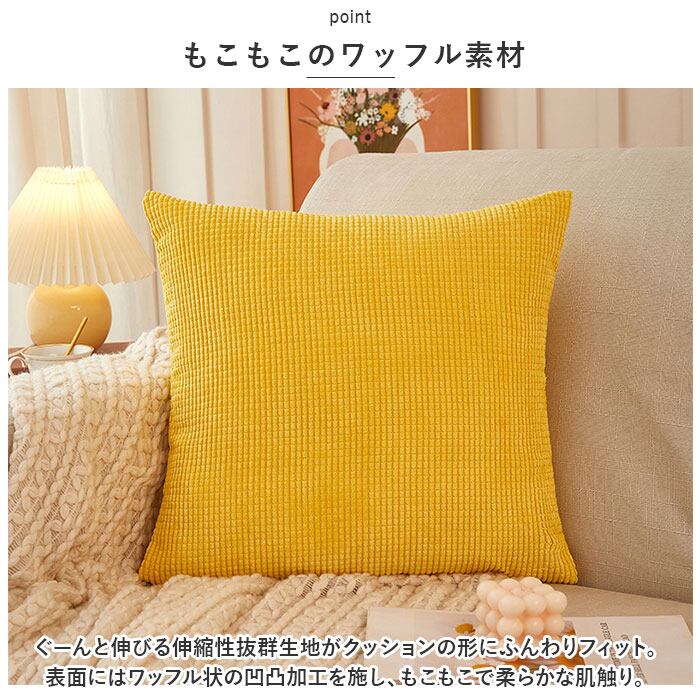 クッションカバー 45×45cm 通販 替えカバー 座布団 背あて 背当て 洗える 吸湿 通気性 やわらかい 柔らかい 四角 しかく おしゃれ オシャレ 無地 ファスナー ワッフル かわいい カワイイ 可愛い カラバリ 模様替え