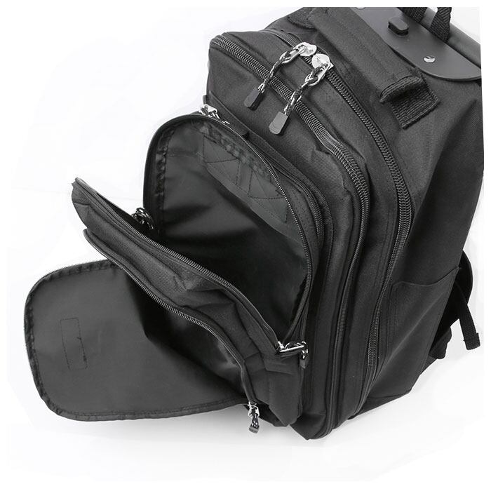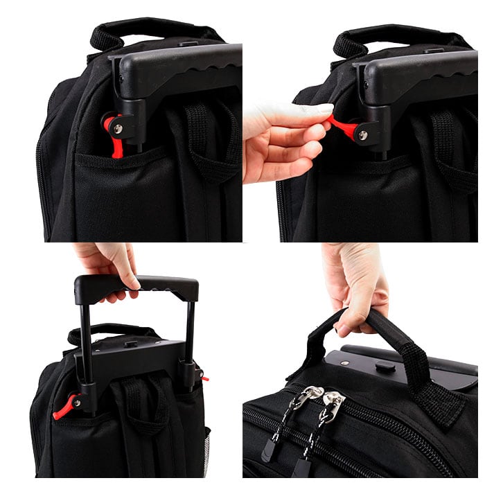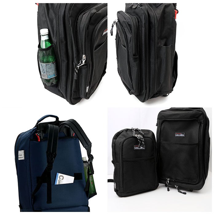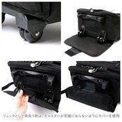 ・トロリーバッグをリュックとして背負う時はキャスターが邪魔にならないようにカバーをし、キャスターを使用する時はリュックのベルトをしまえるので便利。
