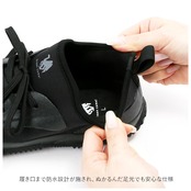 ・本体に厚さ4mmのCRスポンジを使用し、優しく包み込まれるような履き心地を実現。水辺で冷えやすい足元を保温し、キャンプやフィッシングで大活躍!