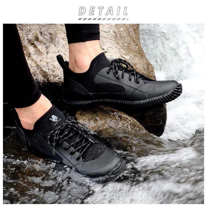 ・釣りなど水辺のレジャーシーンはもちろん、レインシューズとしても履けるアイテム。