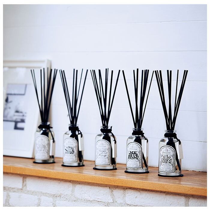 ・太さ違いで組み合せた別売りの専用スティックを挿すことでオイルを吸い上げ香りが広がる。(※専用スティック単体での販売は、当店Backyardではお取り扱いがございません。スティック付属のグランセンス・リードディフューザーは当店の別商品ページにてお買い求めいただけます。ストアの検索窓に商品コード:grancenseと入力いただき、ご覧いただけます。)