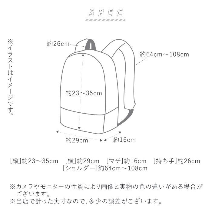 [縦]約23cm〜約35cm(拡張可能) [横]約29cm [マチ]約16cm