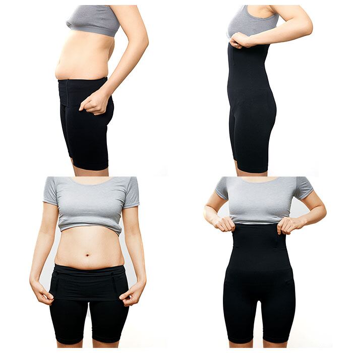 ・お腹周りは二重編み構造で強力補整!下腹からアンダーバストまでをしっかりサポート。