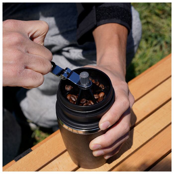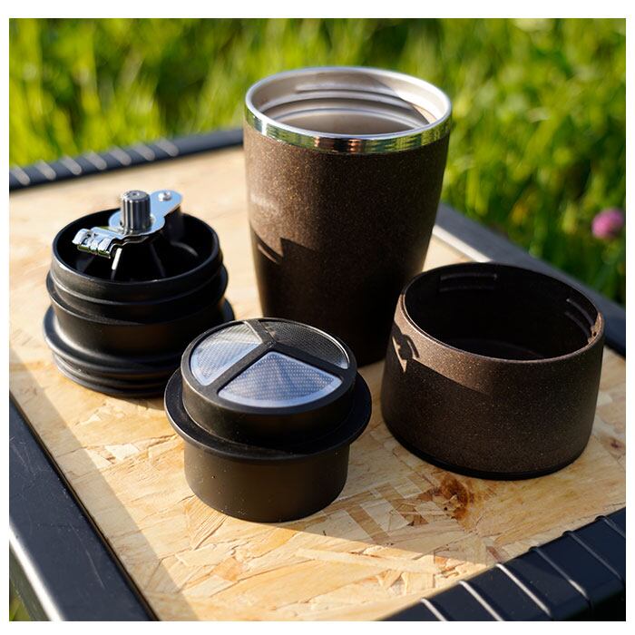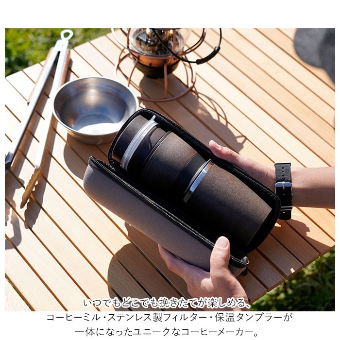 ・いつでもどこでも挽きたてが楽しめる、コーヒーミル・ステンレス製フィルター・保温タンブラーが一体になったユニークなコーヒーメーカー。