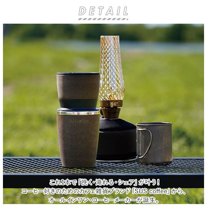 アウトドア コーヒーミル コーヒーメーカー 通販 ミル付き 保温 タンブラー 珈琲 オールインワン おしゃれ コーヒー用品 サスコーヒー SUS coffee キャンプ サステナブル sdgs ギフト キッチン 雑貨