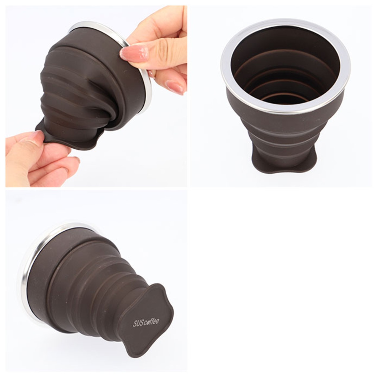 ・タンブラーの容量は300ml、折りたたみ式コップはそれぞれ150mlの程よい容量で、オフィスでのコーヒーブレイクにも最適。