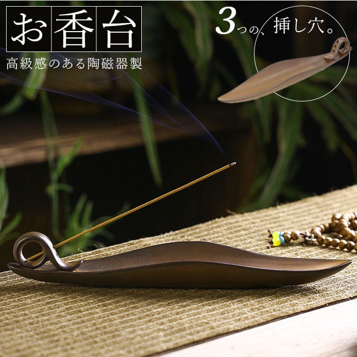 香炉 陶器 通販 横置き 木の葉 三穴 モダン かわいい 線香立て 線香皿 お香立て おこうたて お香たて お香台 お香立てコーン お香コーン アジアン 和風 本格 アロマ お香 incense 癒し リラックス リラクゼーション