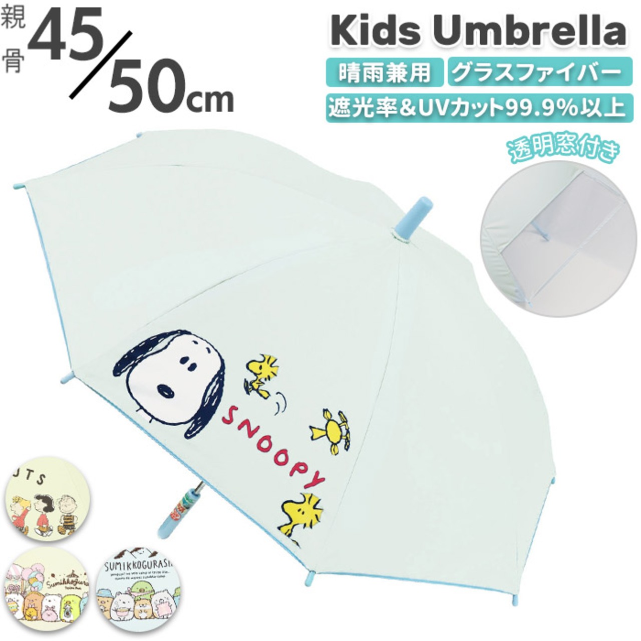 【廃盤】キッズ 日傘 晴雨兼用 通販 長傘 子供 45cm 50cm キャラクター グッズ スヌーピー すみっコぐらし 子ども 園児 かわいい 女の子 男の子 紫外線 対策 uvカット 遮光 おしゃれ