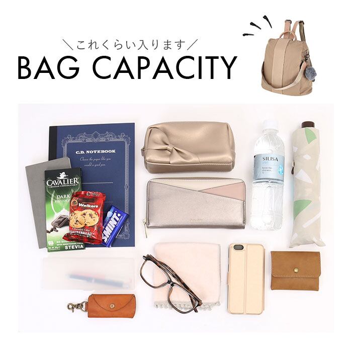 ・ふわふわモコモコのポンポンチャームがアクセント!女子力高めのデザインに、防犯性をプラスした3WAYミニリュック。