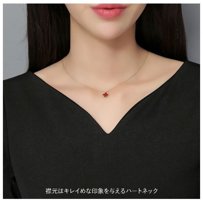 ・襟元はキレイめな印象を与えるハートネックデザイン。