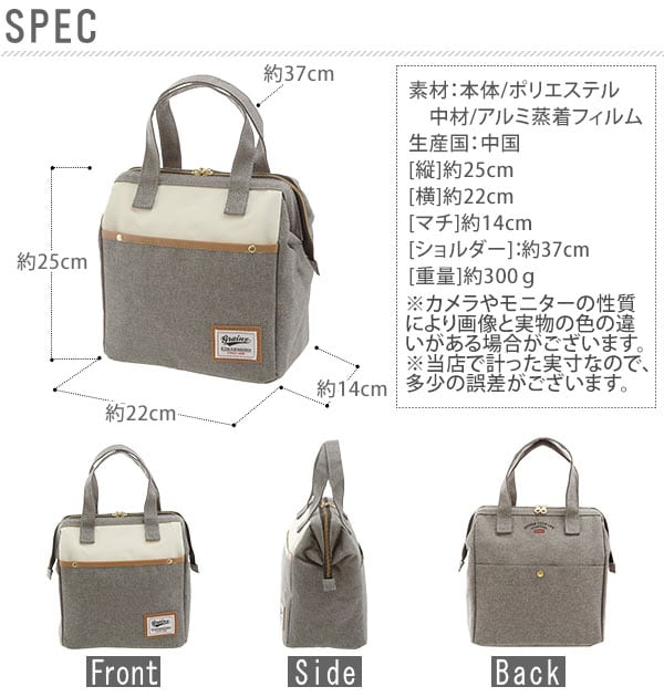 開き口がワイヤー入りで大きく開く、保冷温機能のおしゃれなランチバッグです。ペットボトルも入るLサイズ。
