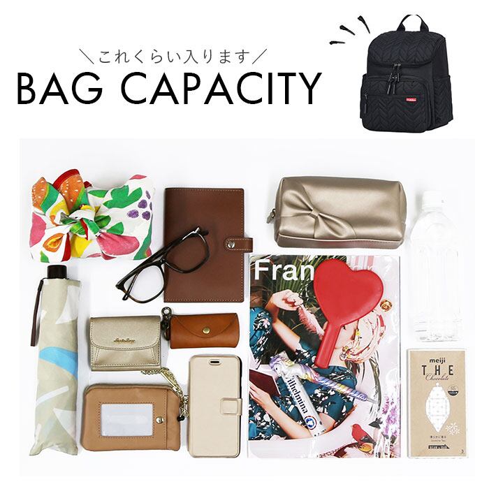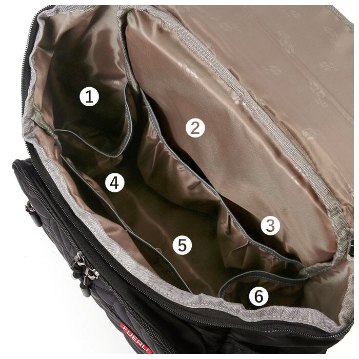 ・メイン収納はダブルファスナー式で中身が見やすく、内側には小物の仕分けに便利なオープンポケットを6ヶ所配置!お子様とのお出かけに必要なオモチャ・オムツ・着替えなどがすっぽり収まる!