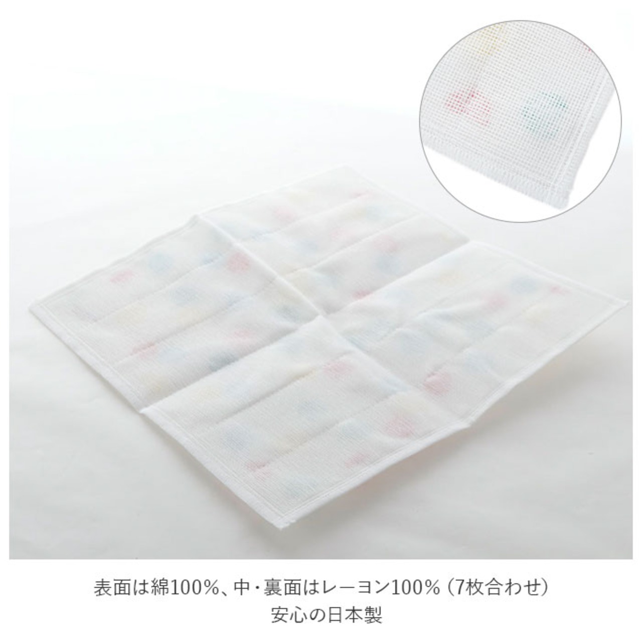 ・表面は綿100%、中・裏面はレーヨン100%(7枚合わせ)。安心の日本製。(※洗うと縮みますが、ふんわりとした風合いがでます。)