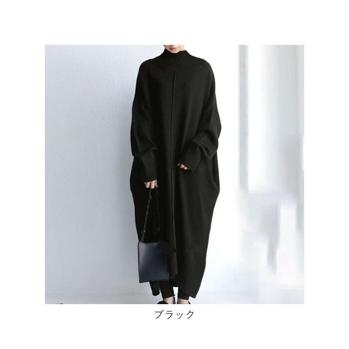 【廃盤】ニットワンピース ロング 通販 ワンピース ニット レディース ワンピ ゆったり コクーン シルエット タートルネック 長袖 マキシワンピース 秋冬 オフタートル カジュアル きれいめ 無地