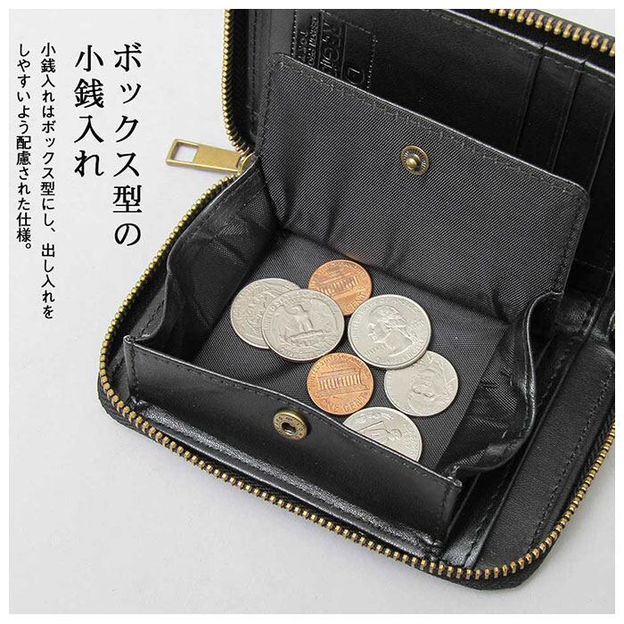 ・2層に分かれた札入れ、間口が大きく開き出し入れのしやすいボックス型の小銭入れなど、機能的で使いやすいつくりが魅力。
