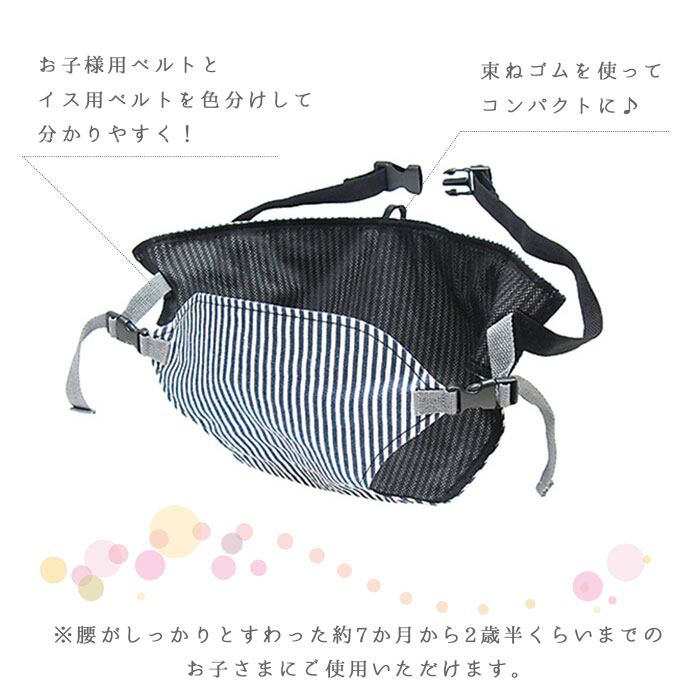 ※保護者の方の膝の上に、お子様をお座りさせるためのご使用の際は、必ず保護者の方が先に座り、足を閉じた状態で装着した後、お子様をお座りさせてください。