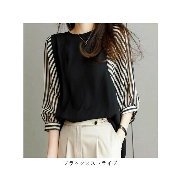 ・お手持ちのスキニーパンツなどと相性抜群。後ろ部分に立体感あるシルエットを作り出すタック入り。(※ブラック×ストライプのみ、生地感やサイズが異なります。)