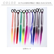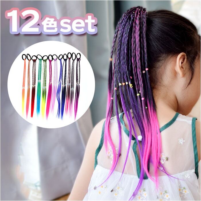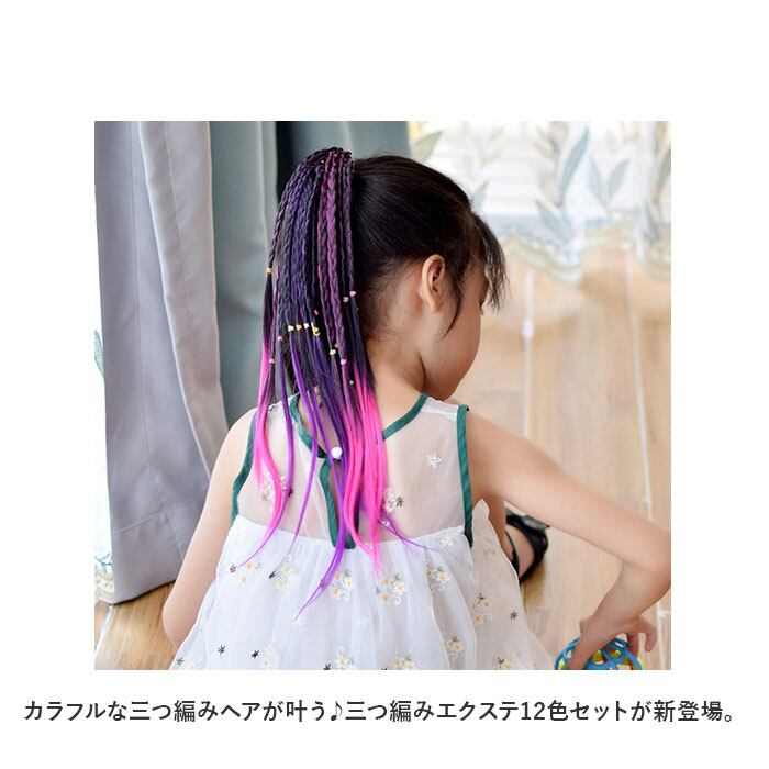 【廃盤】エクステ 子供 通販 ヘアアクセサリー 三つ編み つけ毛 付け毛 編み込み 12色セット 12本 カラフル キッズ 子ども エクステンション ヘアゴム グラデーション カラーエクステ かわいい