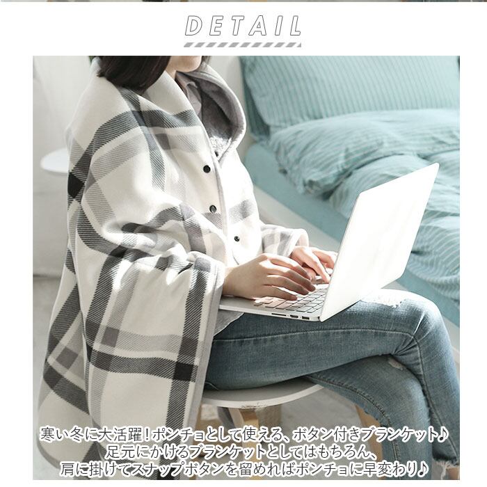 ・寒い冬に大活躍!ポンチョとして使える、ボタン付きブランケット♪